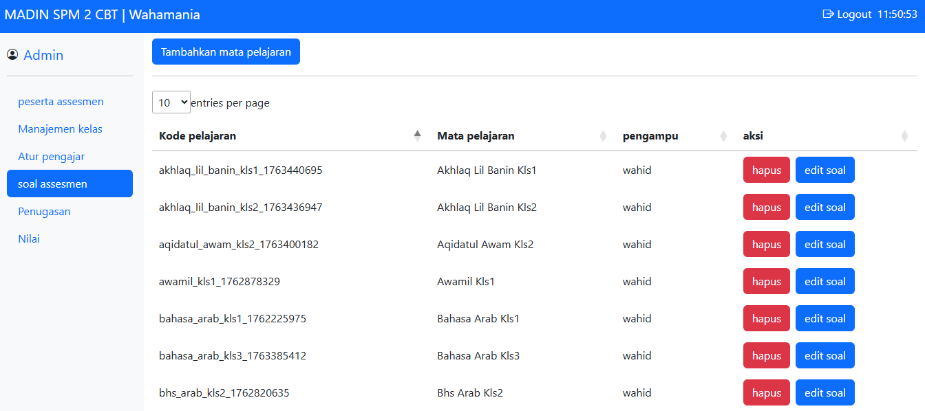 Aplikasi web responsive untuk keperluan pelaksanaan ujian berbasis komputer atau smartphone bagi madrasah diniyah atau sekolah